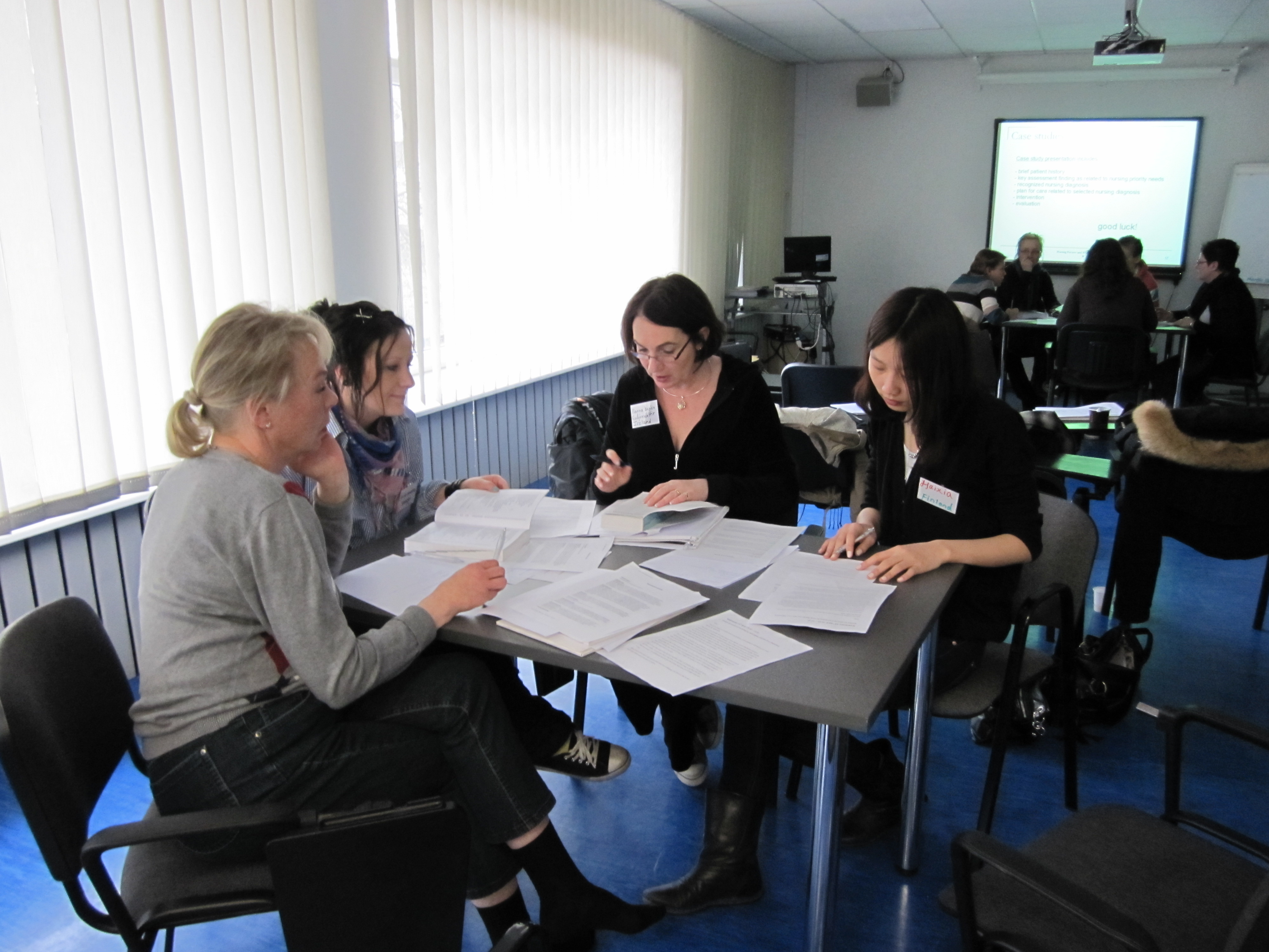 11.-15.04.2011. In the framework of Nordplus programme's Norlys network, an international intensive course "Nordic/Baltic Perspectives on Nursing Diagnoses and Diagnostics" is organized at Tallinn Health Care Colllege. Participants: Marianne Aln?s, Nina Erichsrud, Hilde Halvorsen, Jessica Adefelt, Indre Rackauskate, Maarit Kärkkäinen, Satu Karjalainen, Kristiina Valosaari, Outi Niemonen, Hanna Gudjonsdottir, Gudny Tomasdottir, Sigrun Sigurjonsdottir, Yachun Wu, Zhang Chang, Jenni Airola, Saara Liukkonen, Johanna Mähönen, Katja Heikkinen, Leila Pihlaja, Rika Malmberg, Asta Thoroddsen, Suzanne Bancel, Heidi Bjorge, Haixia Zheng, Marion Jaktin, Panainti Posmatš and Eve Karumaa. Organizers: Tiina Juhansoo, Kristi Voll, Jekaterina Šteinmiller, Anne Ehasalu. Foto1Foto2Foto3 Photo gallery