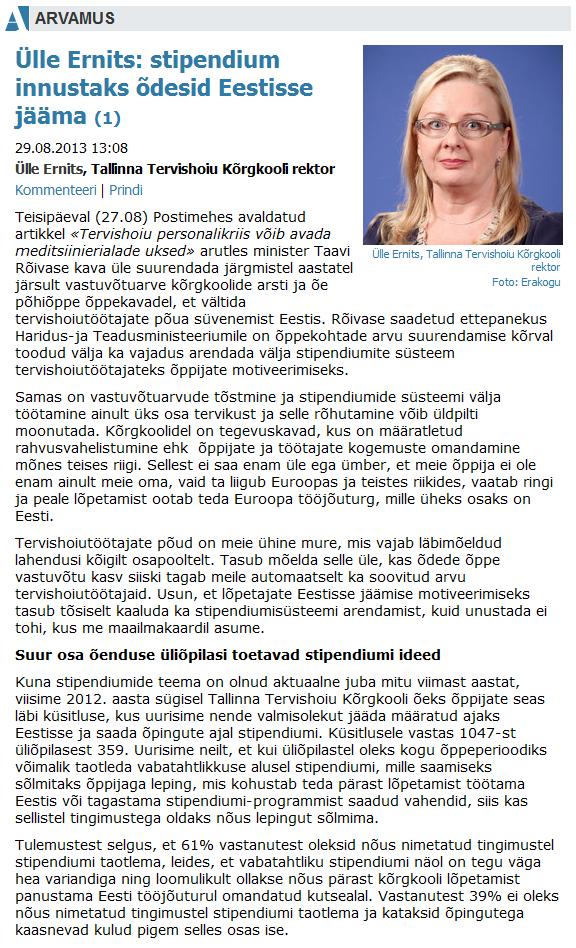 Ülle Ernits: stipendium innustaks õdesid Eestisse jääma (Postimees)