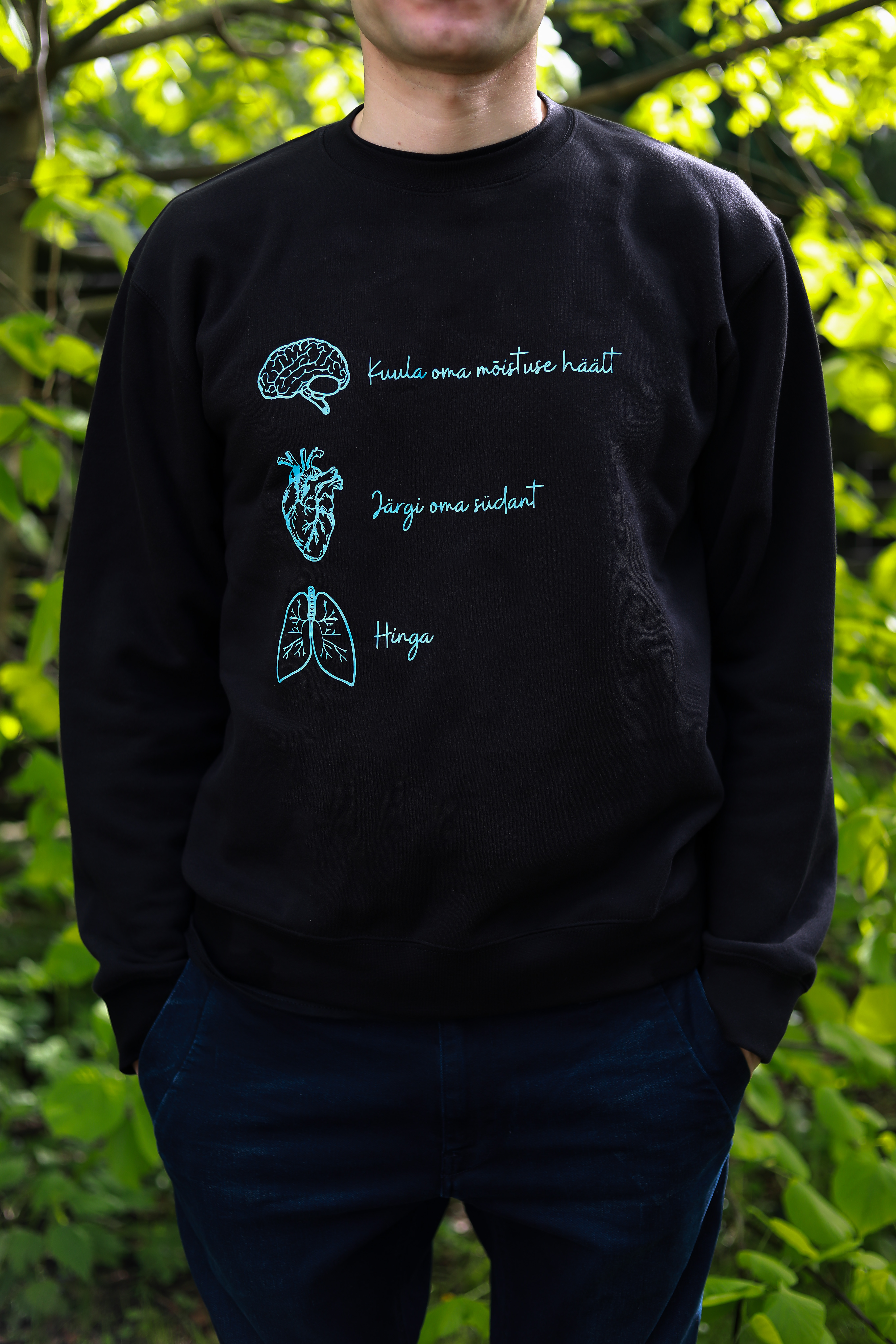 Turja peal valge kõrgkooli logo. Unisex (..S, M, L..). ETTETELLIMISEL!Must dressipluus "Järgi oma südant", 24 EUR