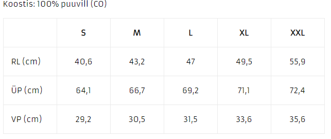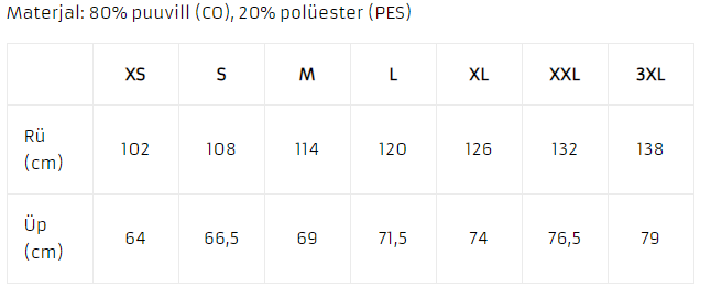 VP - varrukapikkusUnisex dressipluusi suurused: