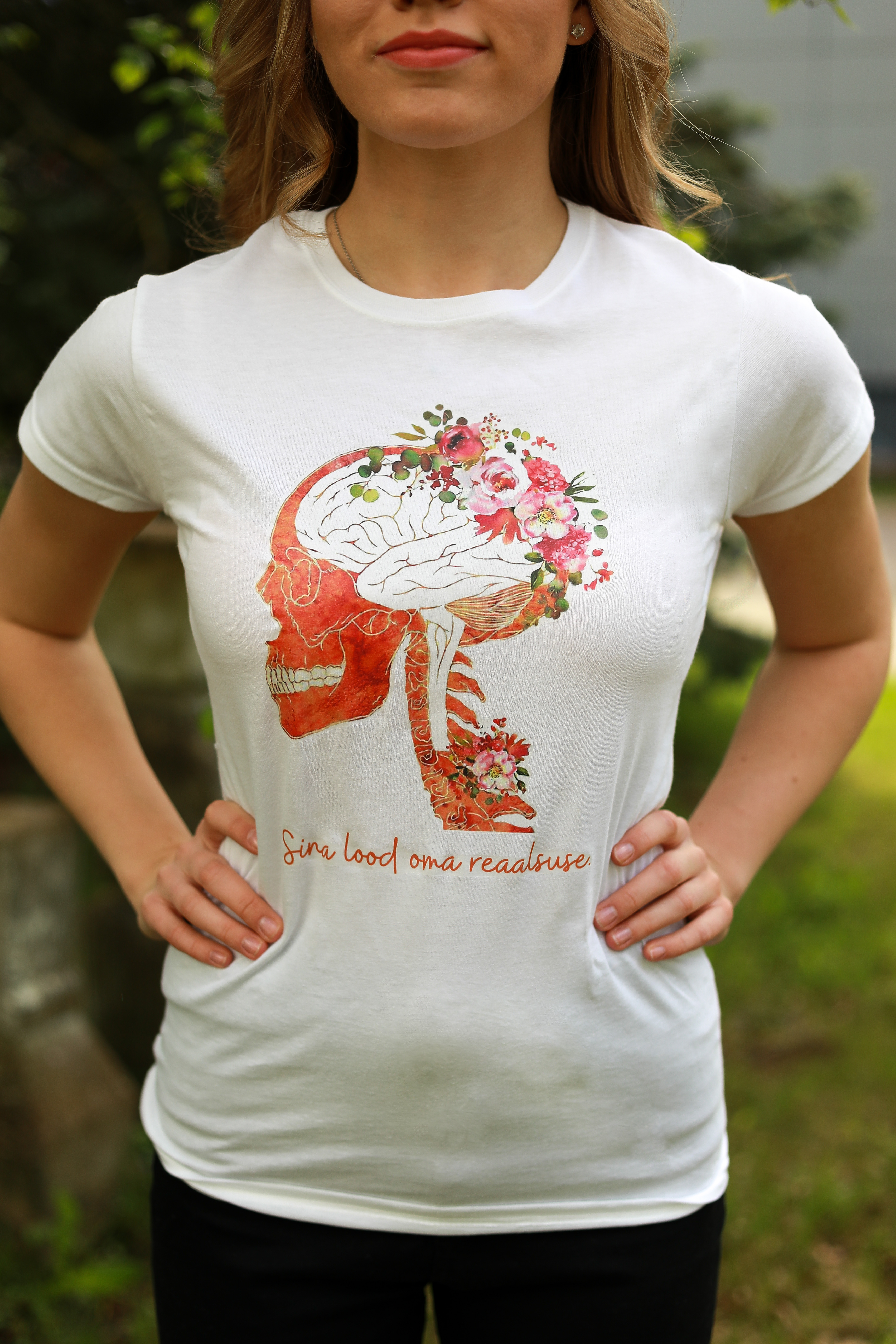 Turja peal must kõrgkooli logo. Naiste, meeste suurused (S, M, L..). ETTETELLIMISEL!Valge T-särk "Sina lood oma reaalsuse", 14 EUR