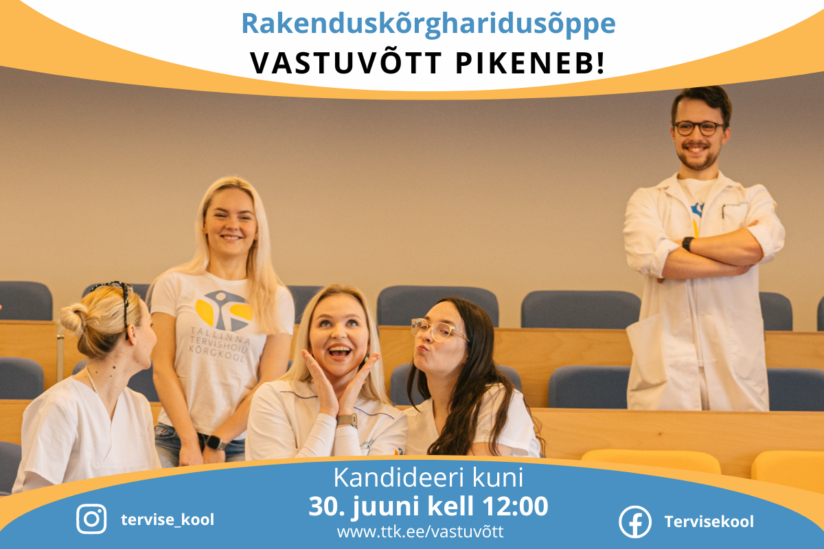 VASTUVÕTT PIKENEB | Tallinna Tervishoiu Kõrgkooli rakenduskõrghariduse õppekavadele saab SAIS-is dokumente esitada kuni 30. juuni kell 12.00