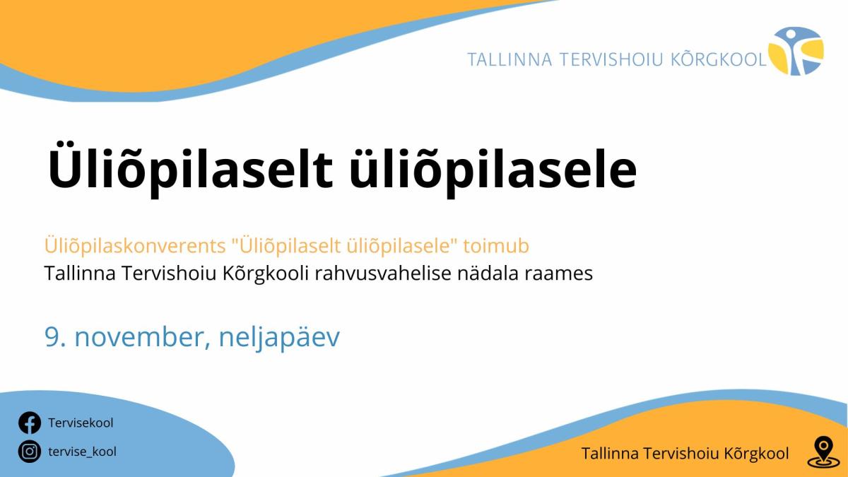 Tallinna Tervishoiu Kõrgkooli rahvusvahelise nädala raames toimub 9. novembril üliõpilaskonverents „Üliõpilaselt üliõpilasele“. Asukoht: Tallinna Tervishoiu Kõrgkooli aula.