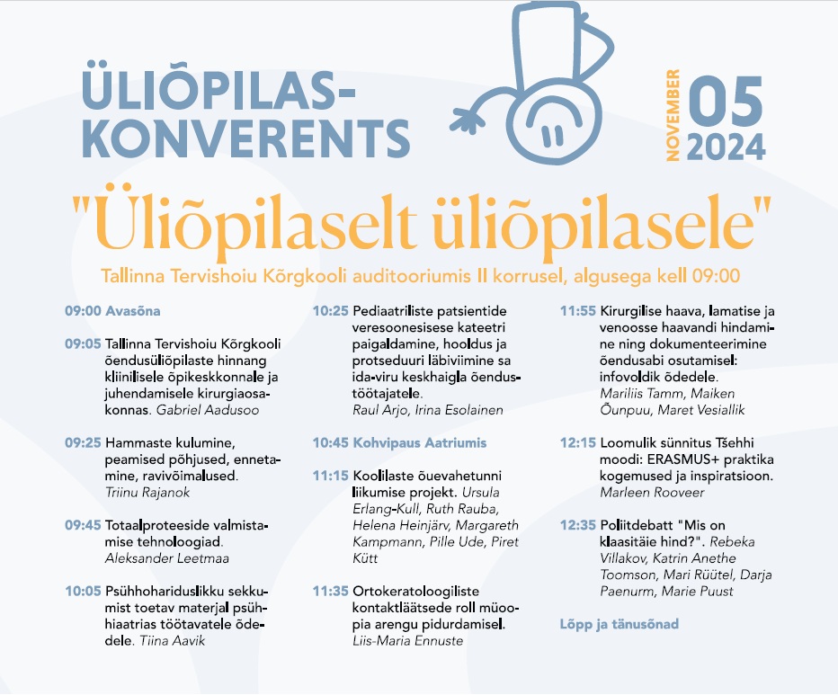 5. novembril toimus Tallinna Tervishoiu Kõrgkooli rahvusvahelise nädala raames üliõpilaskonverents „Üliõpilaselt üliõpilasele“, kus kõrgkooli õppurid jagasid huvitavaid uurimistulemusi, kogemusi praktikal ja vahetusüliõpilasena ning palju muud harivat – kokku 10 ettekannet ja 10 postrit.