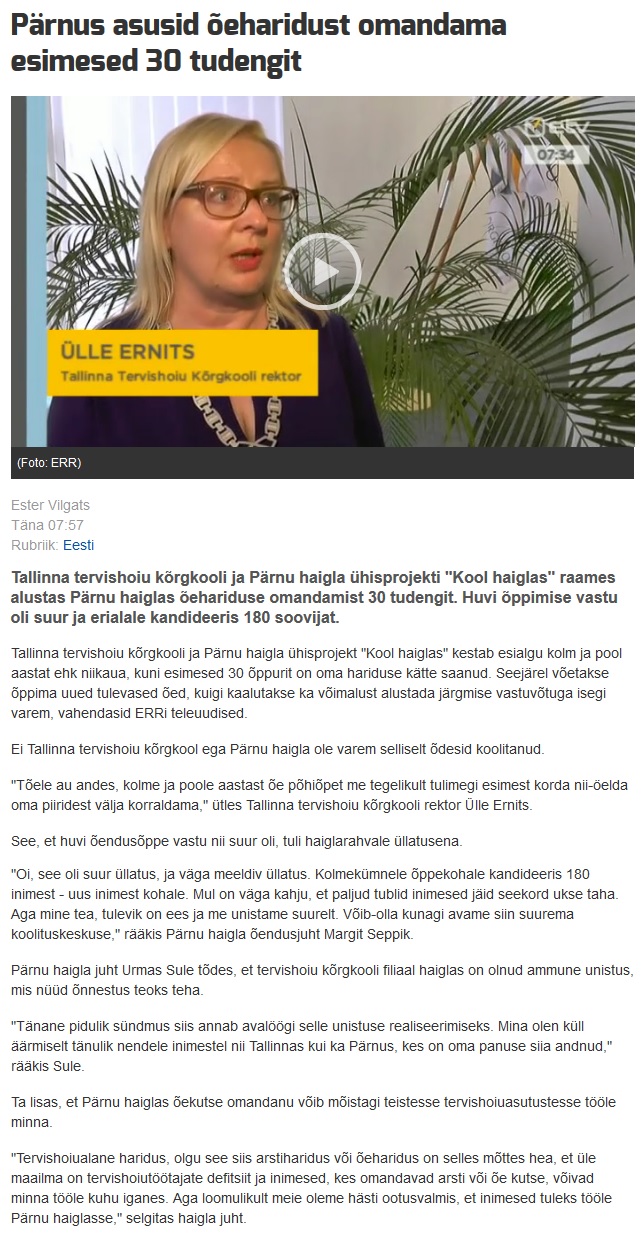 Pärnus asusid õeharidust omandama esimesed 30 tudengit (ERR) 09.09.2014