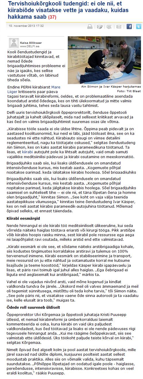 Tervishoiukõrgkooli tudengid: ei ole nii,et kiirabiõde visatakse vette ja vaadaku, kuidas hakkama saab (Delfi)